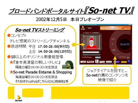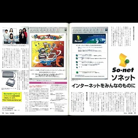 So-net を提供開始会社設立からサービス開始まで、2か月半。驚異的なスピードで立ち上げた So-net は、ターゲットユーザーをパソコン初心者まで拡張。インターネットでもっと楽しくなる社会を目指し、世の中へ送り出した。
