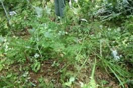 財産区の方々含め、各自エリアを決めヨーイドンで開始したのですが、見た目以上の範囲の広さと、生い茂る雑草の量と大きさに皆苦労しました。 場所によっては丈が3m以上!にも及ぶ太い草と格闘し、芽の天ぷらで有名な「たらの木」のトゲが痛かったのは想定外でした。