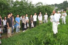 2010年7月31日(土)、So-netから社員18名が参加して、東京駅発8:16発の長野新幹線で佐久平駅に9:33に到着。ジャンボタクシーに分乗し、 佐久市臼田総合公園管理センターに向かいました。早朝の露がまだ残っているような澄んだ清々しい空気の中、大沢財産区はじめ地元の方々 と挨拶を交したあと、ヒノキの植林現場に徒歩で移動。いよいよ整備作業に入ります。