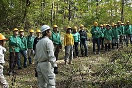 今回は「除伐」という手ノコで雑木を切る作業で、ほとんどの参加者が手ノコを手にするのは初めての状況でした。