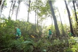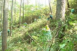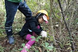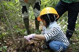 5年間手を入れていなかったとのこと。午前、午後で2時間以上、漆やバラのトゲにも難渋しながら参加者は「森林を維持する」 除伐作業に一心不乱に取り組みました。