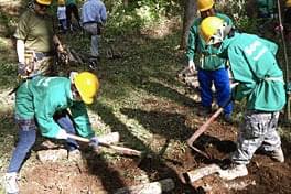 財産区の方々含めた45名が散らばってもなお持て余す程広いエリアで、背丈の何倍もある雑木、雑草との格闘も14時が過ぎ、