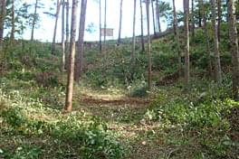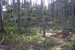 除伐エリアは「So-netの森」看板裏手のカラマツ林。思った以上に広く傾斜も急で、雑木も数メートル伸びた状態でした。
