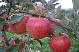 リンゴ農園は高地にあり、浅間山を背にたくさんの実が生っているリンゴの木々が整然と並んでいてとてもきれいな風景でした。新鮮な「信州リンゴ」はもちろん美味!