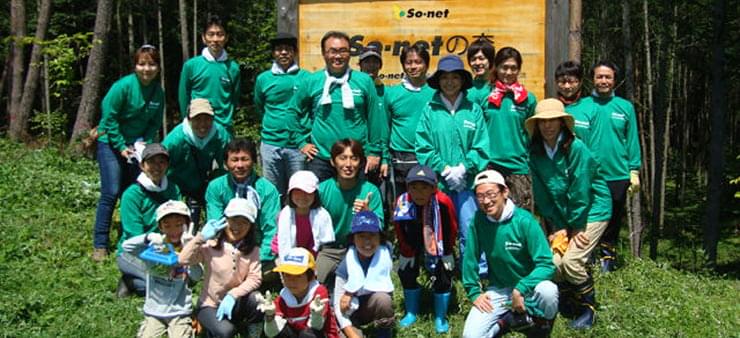7月23日(土)、小学生含む総勢23名が「So-netの森」がある長野県佐久市大沢財産区へと足を運びました。