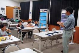 途中、お子さん達は作業を止め、So-netの森すぐ横の“うすだスタードーム”で星の講座を受講しました。