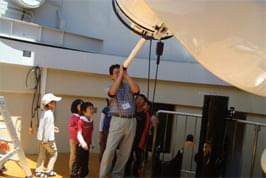 先生のお話と天体望遠鏡にお子さん達は興味津津。作業の疲れは吹っ飛んだようです。