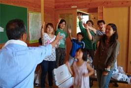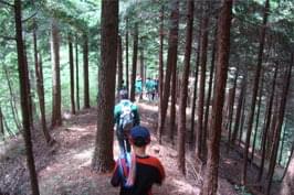 午後は分教場をたち、バスで“平尾の森”に向かいました。そこでお子さんたちは昆虫体験、大人たちは森林セラピーと二手に分かれました。