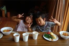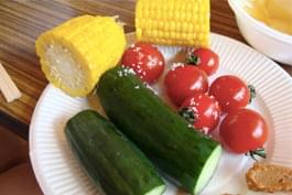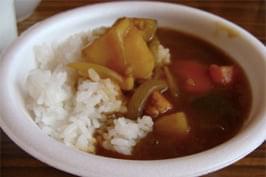 分教場に着くとみんなお待ちかねのお昼ごはんです。今回は夏野菜の盛り合わせとさらっとしたスープカレー。それに夕顔のお汁。お子さんも大満足。大人たちは夏の恵みに感謝しました。