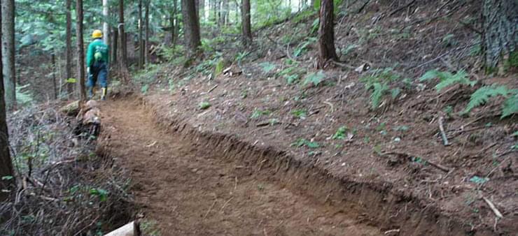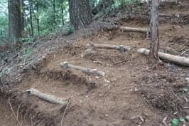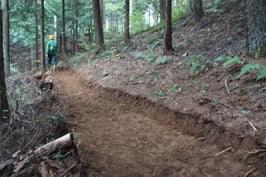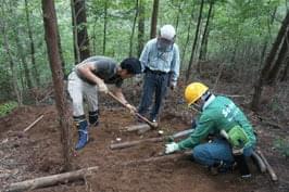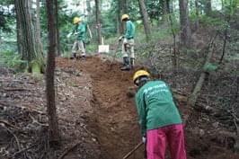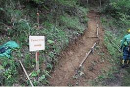 鍬を使って急斜面を深く掘ることは大変で、時にはノコギリを使って地中にある木の根を切り、時には粘土質の土壌に苦労し、汗だくになりながらも各自担当した数メートルを整備しました。