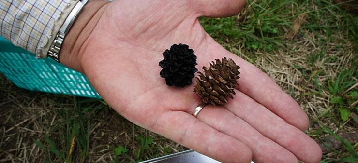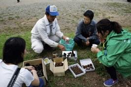 「So-netの小径」の整備作業でいい汗をかいた後、「大沢の森分教場」での昼食や炭作り体験、リンゴの名入れ作業という第7回目の活動となりました。