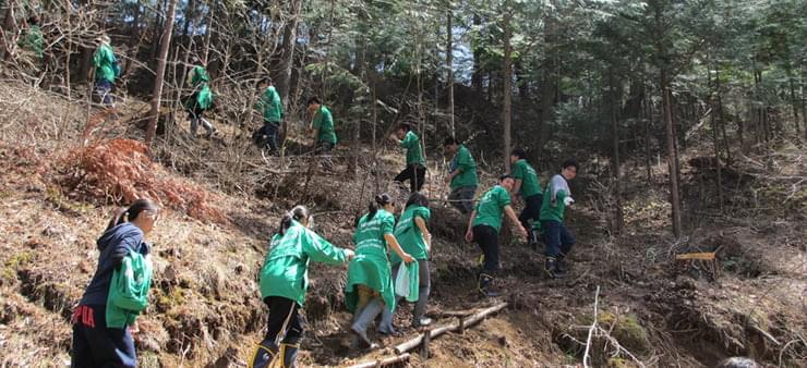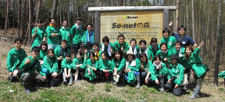 ソネットエンタテインメントでは、企業の社会的責任(CSR)の一環として、森林保全活動による社会貢献・地域交流を通じ社員の環境保全意識の高揚を図るとともに、 森林整備・地域の方々との交流を図っていくことも目的として活動しています。