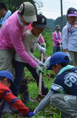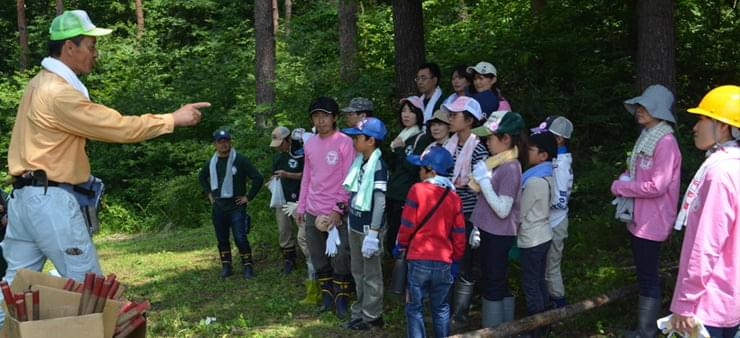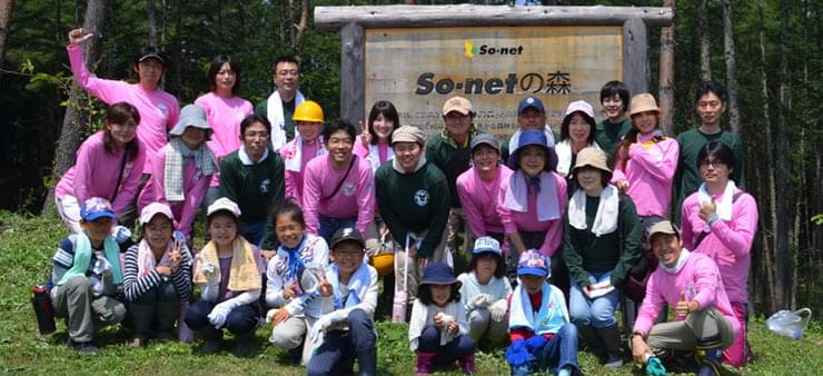 環境CSRの一つとして行っている「So-netの森」の活動の一番の目的は森林整備ですが、今回のように社員の子ども達も一緒に参加し、大自然に囲まれた大沢地区ならではの体験活動も行っています。