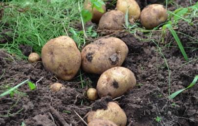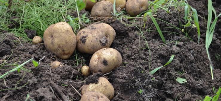 下草刈りの作業後は、4月に植えたジャガイモの収穫のためにジャガイモ畑に向かいました。