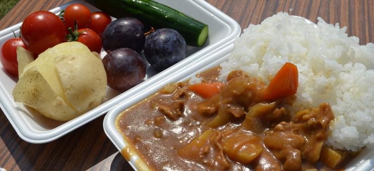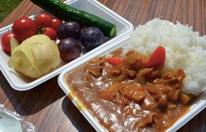 心地よい風と夏空の下、みずみずしいキュウリとトマトは渇いた喉を潤し、カレーライスとジャガバターで空腹を満たしました。