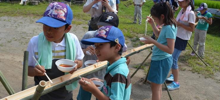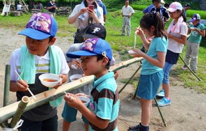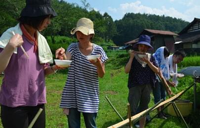 今回は大沢地区の皆さまのご厚意で流しそうめんを組んでいただきました。