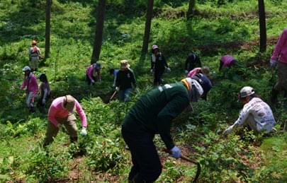 7月28日(土)、第11回となる森林整備活動は夏休み期間中でもあったため、社員の子どもを含む計33名が足を運びました。