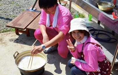 昼食休憩(地元食材を使用したカレーライス、生野菜、流しそうめん)