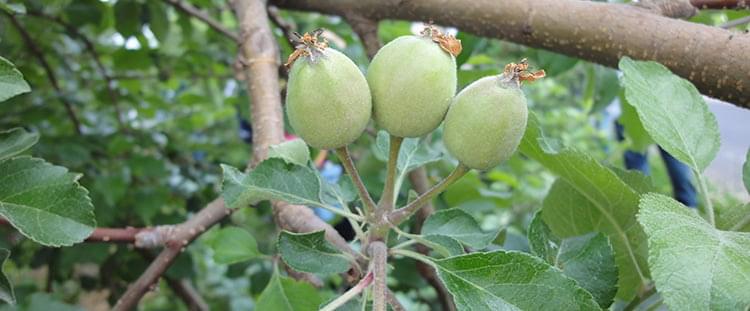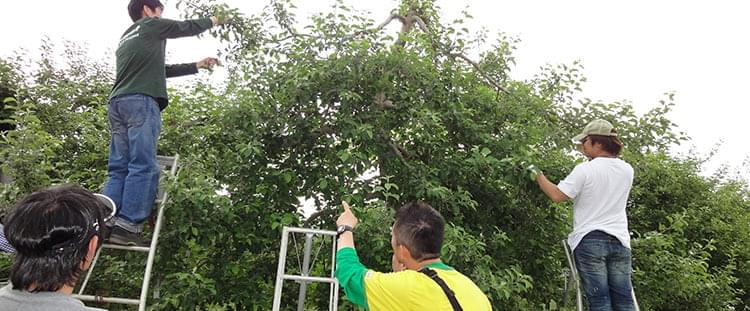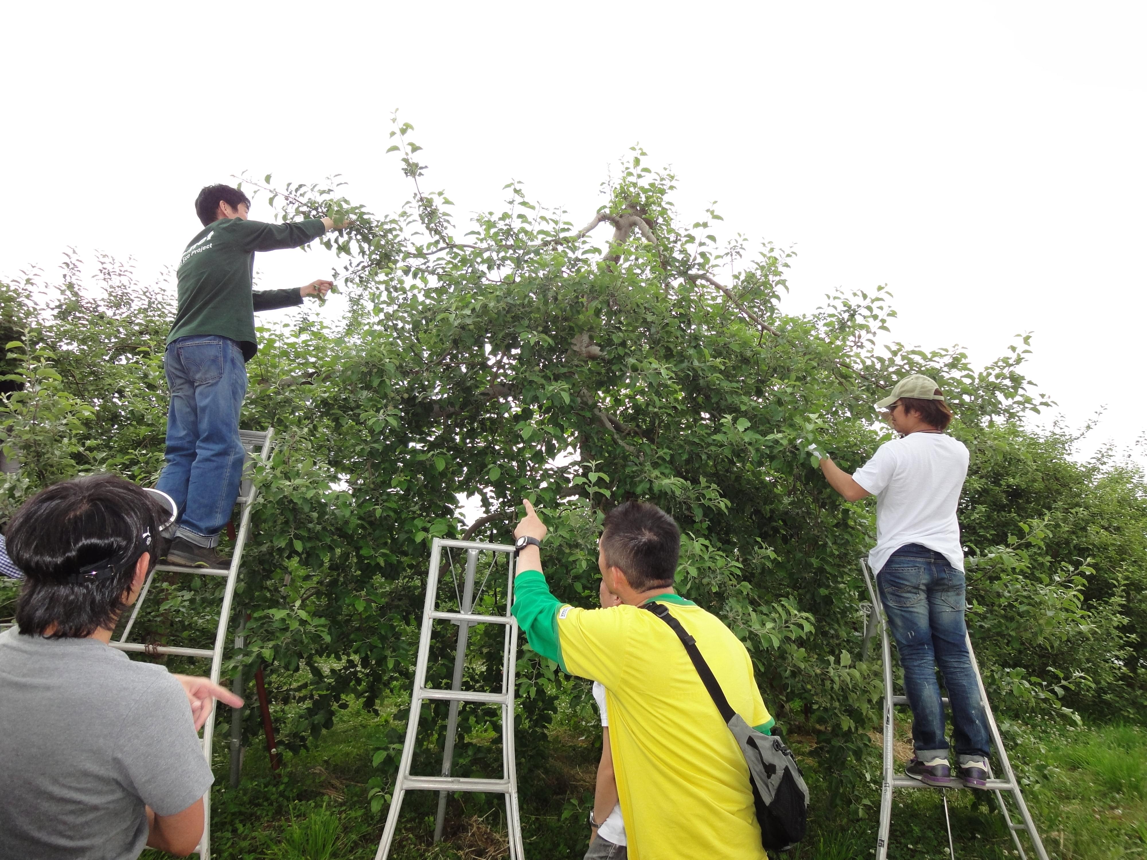 ランチの後は、リンゴの摘果作業のため「阿部農園」へ。今年は冷害の影響で、例年よりもやや実の付きが悪いようです。