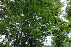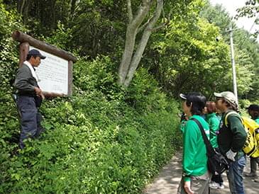 コースの入り口付近では「大径広葉樹育成展示林」があり、1.31haの林内にクリやミズナラ、ホオなどを中心に20種以上の樹種が育成されています。将来の有用材となる木を定め、その木が十分に育つように環境を整備しているのです。この展示林は、優良な広葉樹林を次世代に引き継いでいくための1事例として設置されているそうです。