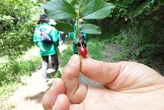 森林トレッキングをしながら、森の話を色々聴かせて頂きました。森と海は密接に繋がっていて、豊かな山の恵みは豊かな海の恵みをもたらすこと。森と林の違い(種類や高さのバリエーションがあるのが森)、育ち盛りの若い樹だけが二酸化炭素を吸い、老いた樹は吸わないこと、例えば、広葉樹と針葉樹が混生する森林のように、バラエティに富んだ樹があるかどうかが森の今後を左右するということetc.。自然を良い形で守る為には、手をかける必要があるのだということを、改めて再認識する機会となりました。
