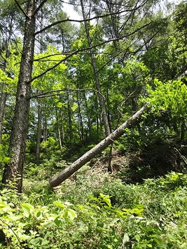 - 広葉樹林の育成や既に成長して伐採を待つ林の存在、春先の冷え込みで枯れてしまったヒノキの苗木など、自然を相手とする林業の厳しさを実感しました。
