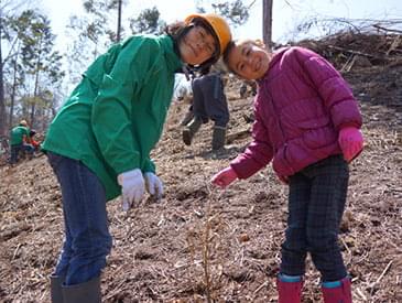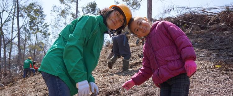 今回の活動では、植林という比較的力が必要な作業を子どもたちも含めて一緒に行うことができたことが印象的でした。このような社会貢献活動としてのボランティアに取り組む子どもたちの表情がとても生き生きとしていて、社会貢献活動が、一時的な体験ではなく、自然な形で日々の生活の中に溶け込んでいるようでした。