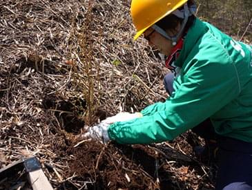 - 今回の作業は「植林」がメインで、自分が植えた木の経過を見るために是非また参加したいと思いました。日々の業務以外の部分で社会に貢献できるこのような活動は、大変素晴らしいと感じました。