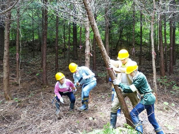 今回は梅雨に加え、台風が通過するなど、波乱含みも想定していましたが、作業中は天候に恵まれ、熱中症などの心配もなく、参加された皆さんのご協力もあって安全に間伐作業を行うことができました。