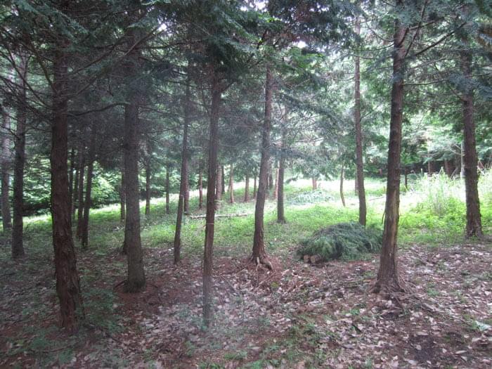保育間伐とは、木々が混み合っていると一本一本が痩せてしまうため、良い木を育てるために間引きをすることです。