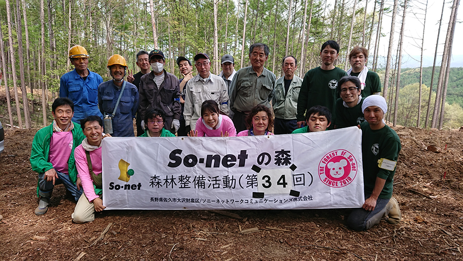 晴天となった2023年4月29日(土)、2019年11月に開催した第33回森林整備活動からコロナ禍を経て、3年ぶりに『So-netの森』第34回森林整備活動が再開され、計13名が参加しました。