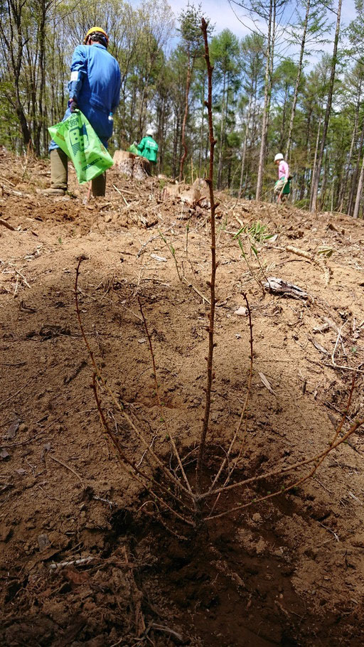 今回はコロナ明け初回ということもあり、慎重を期して少人数での活動となりましたが、合計で約500本のカラマツの苗木を植えることができました。