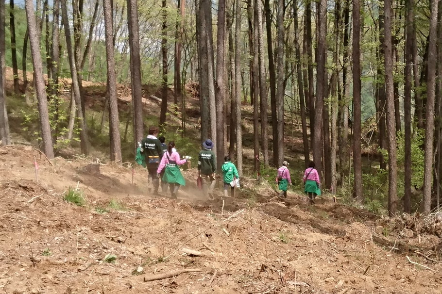 植栽の作業が進んでいき、予定の区域全体に約500本の苗木が植わりました。一人当たり40本から50本を植えた計算になります。