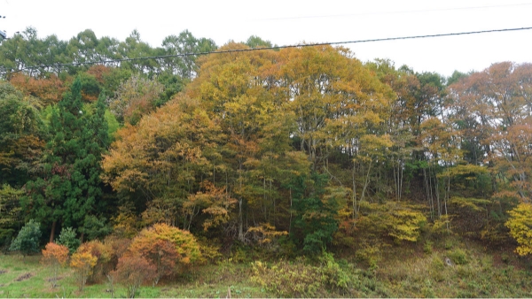 今回の活動の拠点となる広葉樹のコナラが生い茂る森林に移動。大沢財産区の森林は、紅葉が始まりつつあります。