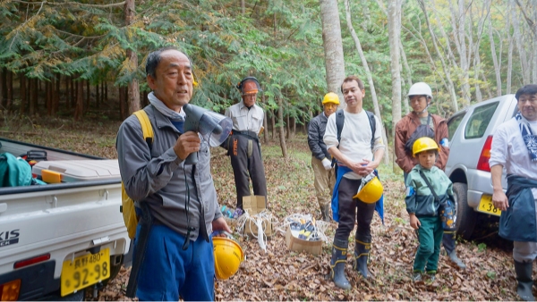 活動を始める前に、普段は林業に携わる大沢地区の議員さんから、子どもたちにもわかりやすく丁寧に説明がありました。