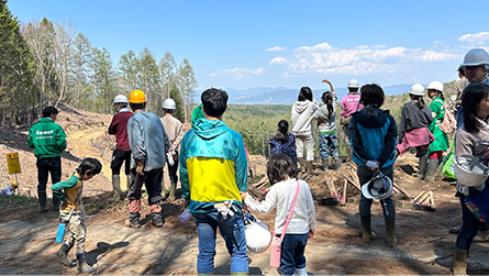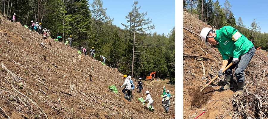 慣れない傾斜のある土の上での作業に最初は四苦八苦するも、次第にそれも慣れていき、休憩後は一気にスピードアップ。最終的に植えた苗木の数は1,000本にもなりました。