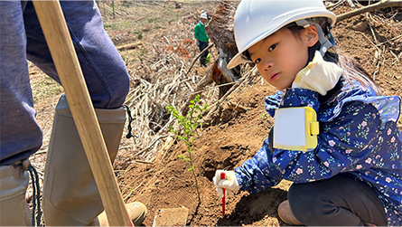 「普段はデスクワーク中心のため、職場の方々と自然の中でともに活動する新鮮さを改めて感じました。植林を通じて環境への関心がさらに深まり、桜の木付近での昼食会も心に残るひとときでした」