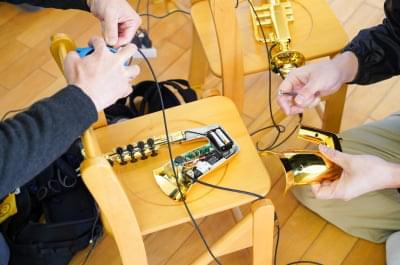 そして、ソニー・ミュージックエンタテインメントのEdgeTechプロジェクト本部が、ソニー・セミコンダクタソリューションズのSPRESENSE、ソニー・グローバルエデュケーションのロボット・プログラミング学習キットKOOV®などと誰でもすぐに演奏できる“ゆる楽器”を開発し、新しい合奏体験の場を作りました。